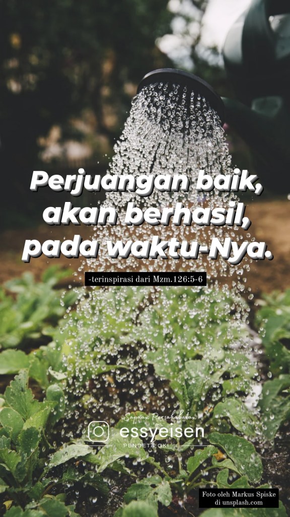 Apakah sekarang ini kita sedang menghadapi situasi hidup yang tidak mudah? Apakah kita sedang memperjuangkan apa yang baik demi keadilan bagi sesama ciptaan Allah? Maka marilah kita terus berjuang. Benih kebaikan yang kita tanam dengan air mata akan bertumbuh dan berbuah menghasilkan sukacita. Sekecil apapun langkah perjuangan kita, bersama kuasa kasih Allah, kita akan melihat kebaikan yang hadir kelak karena kasih Allah adalah kasih yang setia.