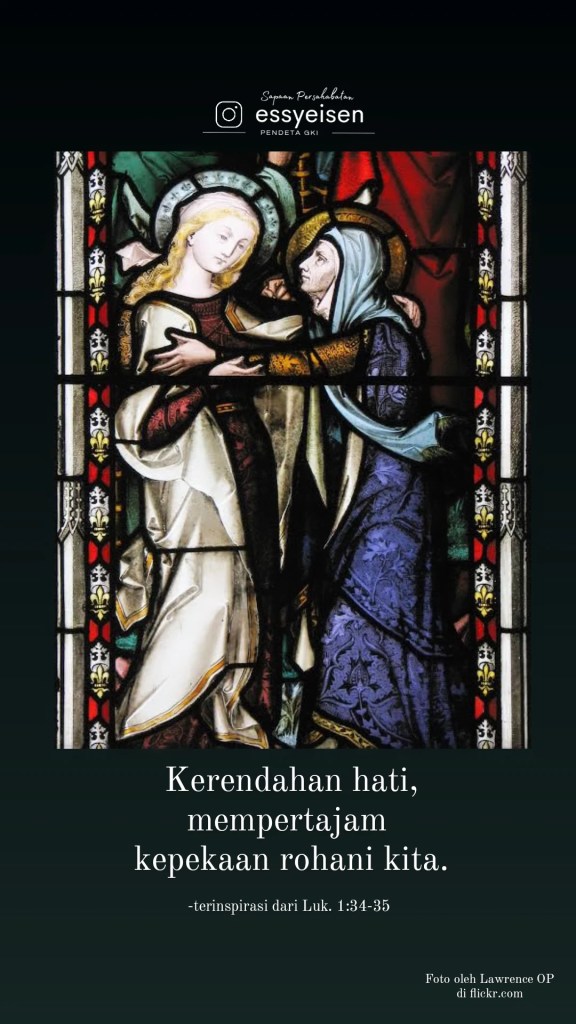 Hari ini, biarlah karena kerendahan hati, kepekaan rohani kita tetap tajam untuk mengenali bagian yang dapat kita kerjakan bersama-sama dengan Allah untuk memperbaiki bumi ini dan masalah relasi antara sesama ciptaan-Nya.