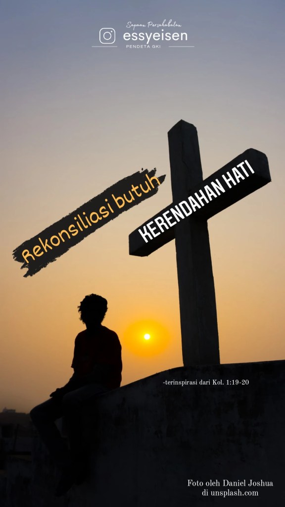 Maka jika hari ini kita merindukan terjadinya rekonsiliasi dalam hidup kita, pandanglah salib Kristus. Hayati maknanya, terimalah dengan iman kuasa kasih-Nya. Allah melalui Roh-Nya akan menolong kita untuk menemukan solusi bahkan menjadi solusi seperti Kristus Anak-Nya, dalam menyikapi perseteruan hidup yang sedang kita alami.